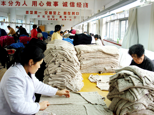 山東乳山工藝品有限責任公司始建于1956年,注冊資金1006萬元,占地面積1.19萬平方米,建筑面積2.55萬平方米,轄衣衫廠、抽紗廠兩個分廠,加工銷售機繡制品、針織衣衫、手工藝品、紡織輔料等。年加工總量880萬件(套),年銷售收入1.8億,80%以上產品銷往美國、加拿大、韓國、日本等國家和地區?,F有在職職工600人。擁有各類毛衫生產設備1000多臺,公司總資產1.4億。